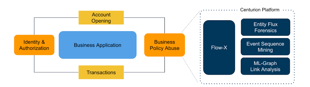 The Centurion SaaS Platform, powered by our patented Flow-X technology, distinguishes itself through its comprehensive approach to detecting and preventing financial fraud. Our Entity Flux Forensics, Event Sequence Mining, and Linkage and Graph Analytics strategies ensure that fintech companies, banking institutions, and insurance providers remain at the forefront of financial security.